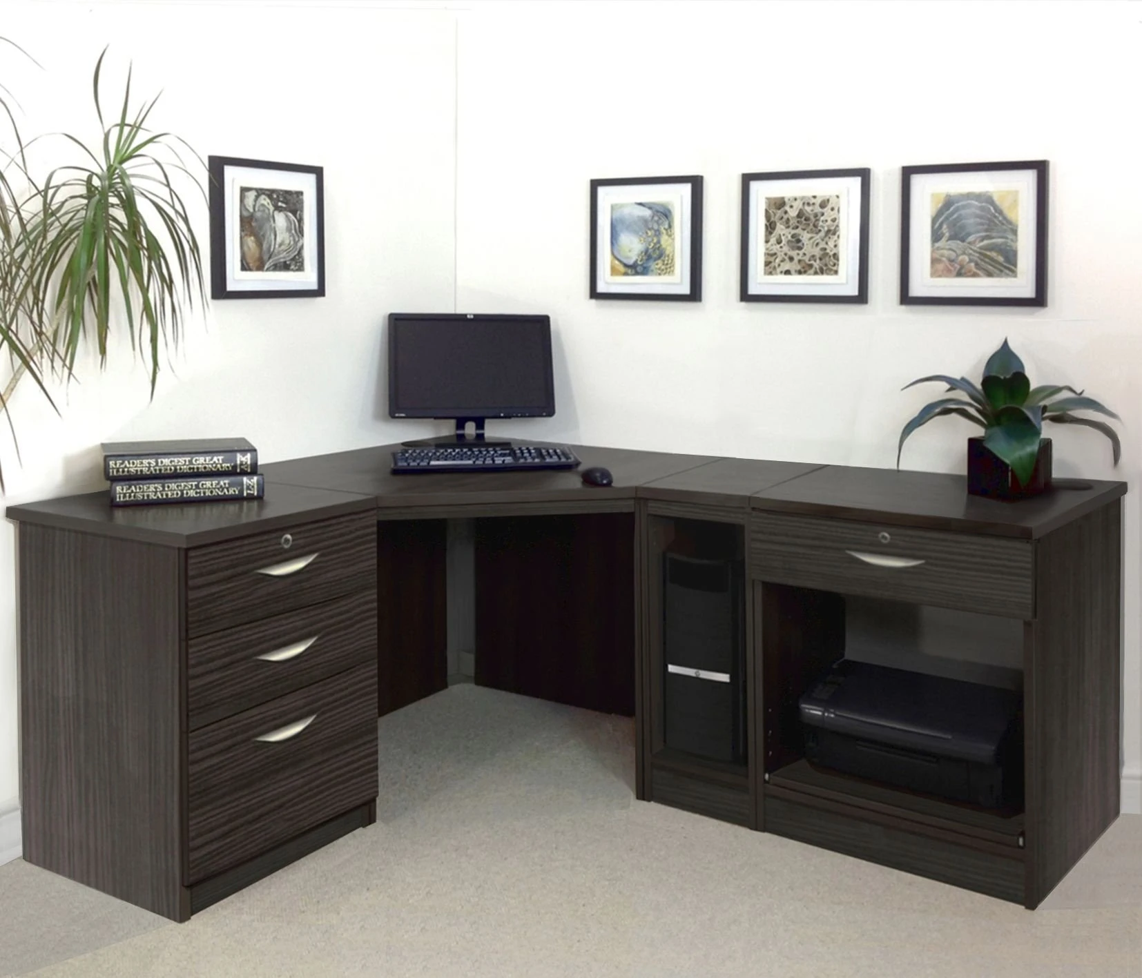 - Available in a selection of wood-effect finishes, or White satin finish.