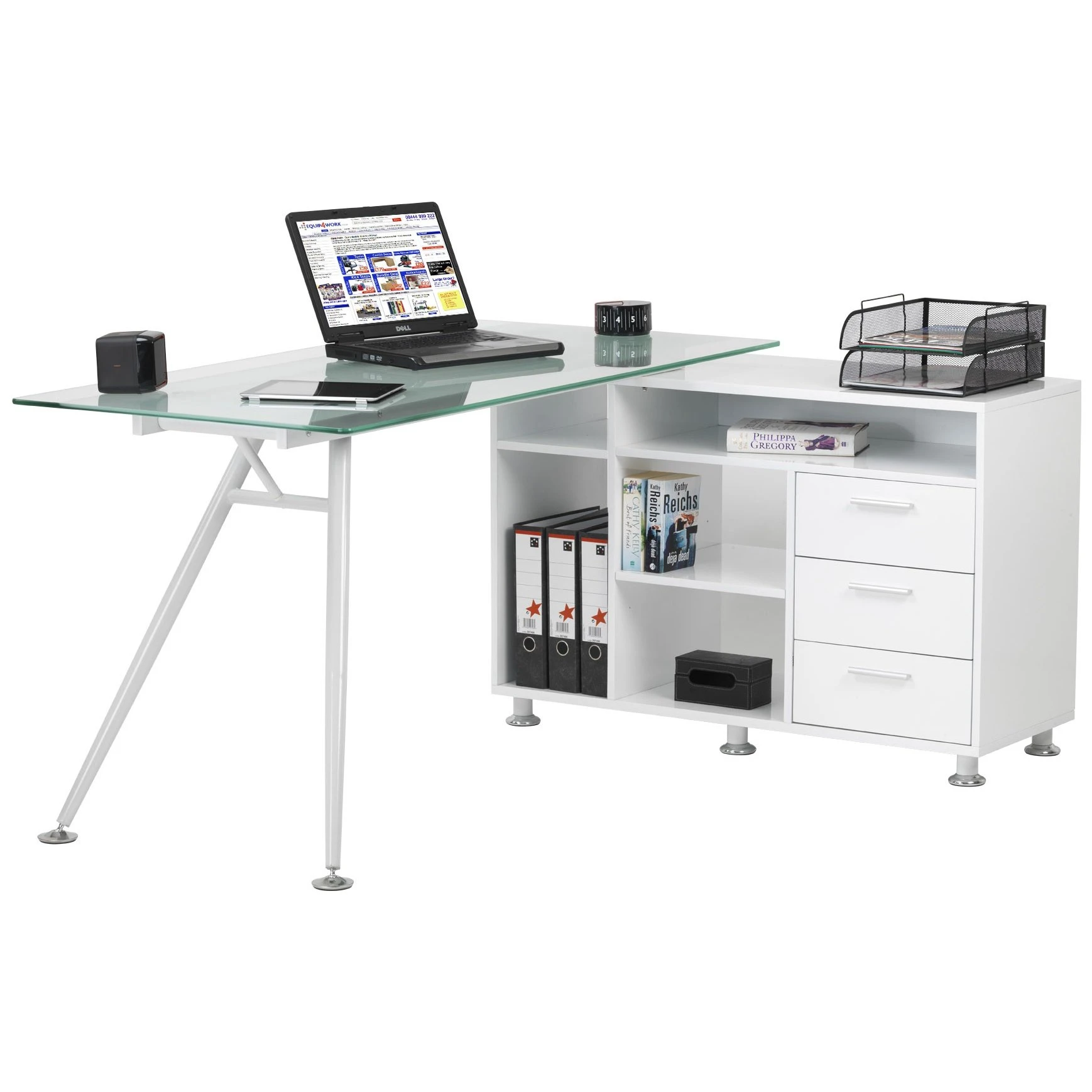 - Glass desk supplied with levelling feet to help stand firm on uneven surfaces