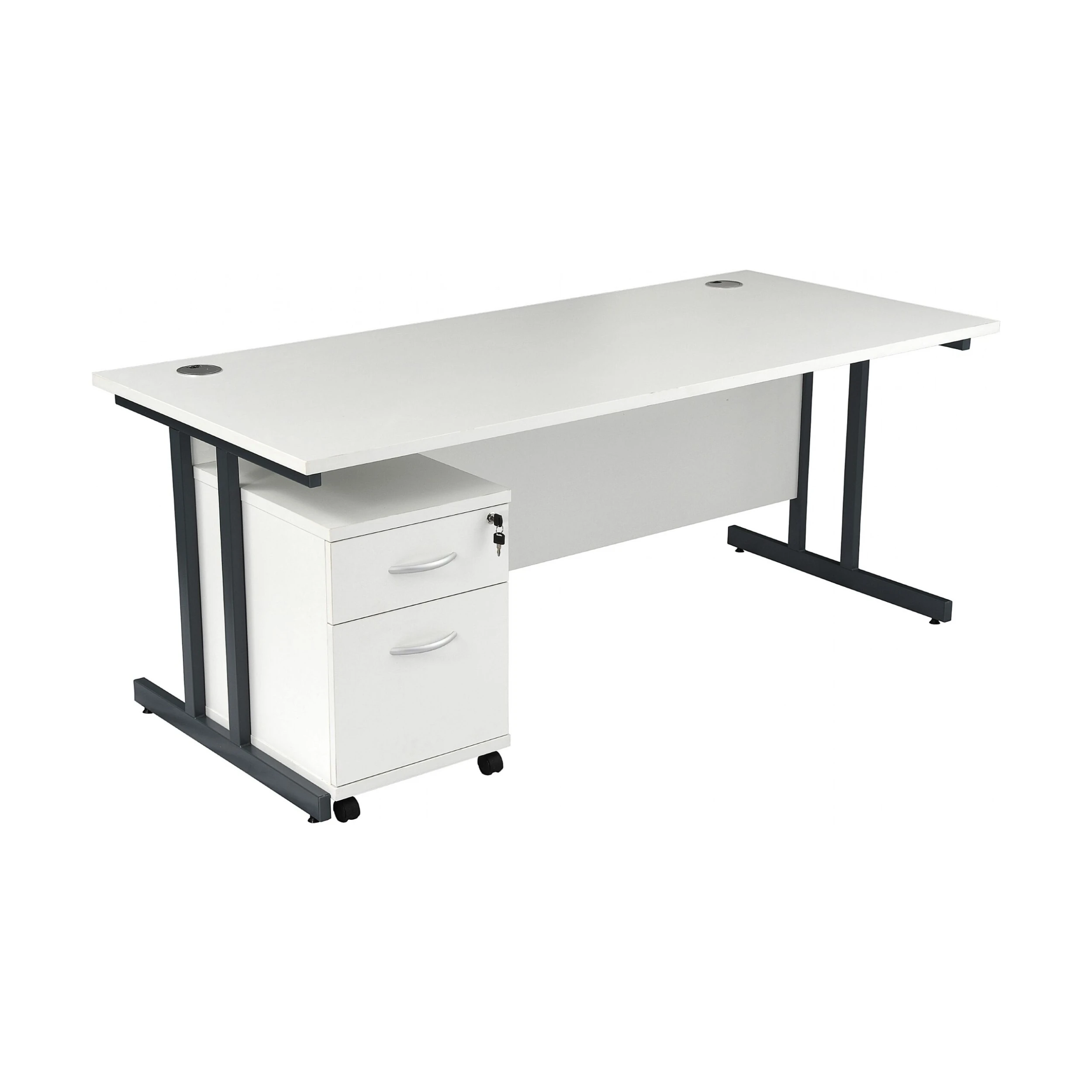 - Classic dual upright cantilever design rectangular office desks with a handy under desk pedestal.